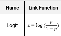 – A logit link function transforms the probabilities of the levels of a categorical response variable to a continuous scale that is unbounded